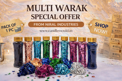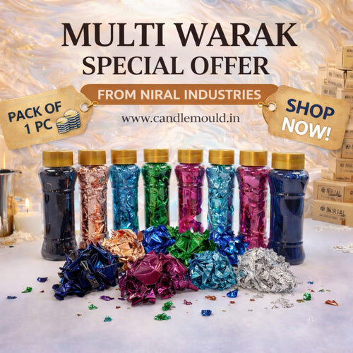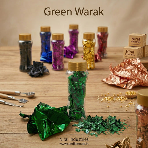 View full detailsElevate your candle designs with Niral Industries Golden warak Sheets. This pack of 20 shimmering sheets adds a luxurious metallic finish, perfect ...