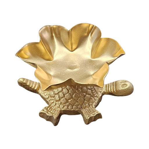 View full detailsElevate your home décor with this stunning Golden Tortoise Metal Holder Urli. Crafted with meticulous attention to detail, this piece combines trad...