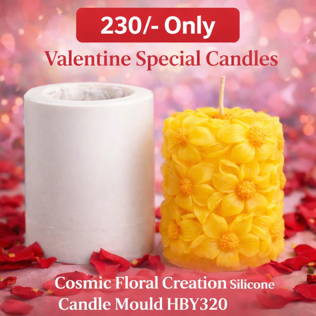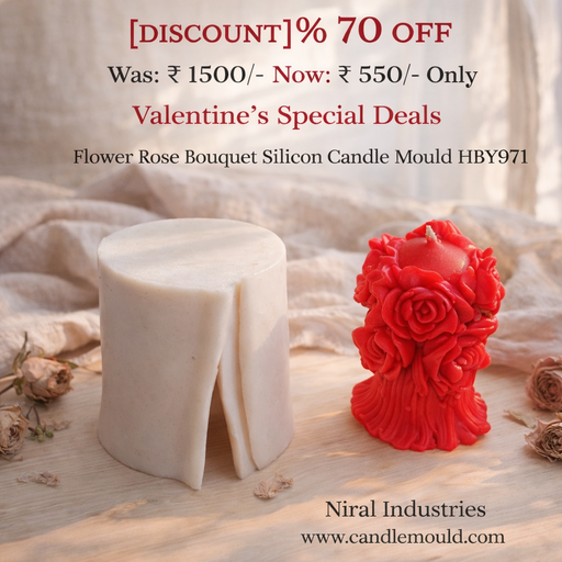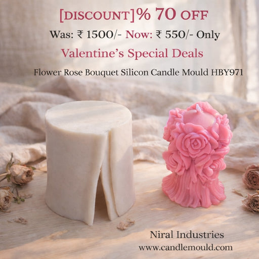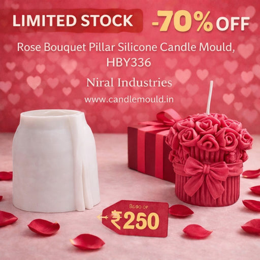 Item Code = HBY336 Candle Weight = 110 gm Diameter = 6.7 cm Height = 6.3 cm The "Rose Bouquet Pillar Silicone Candle Mould" is a high-quality, f...