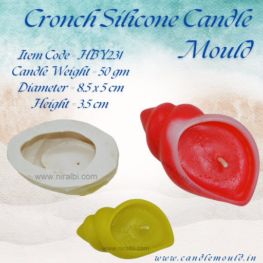 Niral IndustriesItem Code = HBY231 Candle Weight = 50 gm Diameter = 8.5 x 5 cm Height = 3.5 cm The "Cronch Silicone Candle Mould" is a flexible and reusable mold...
