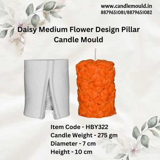Niral IndustriesItem Code = HBY320 Candle Weight = 130 gm Diameter = 5.5 cm Height = 7.2 cm Craft elegant pillar candles with our Cosmos Flower Design Mould....
