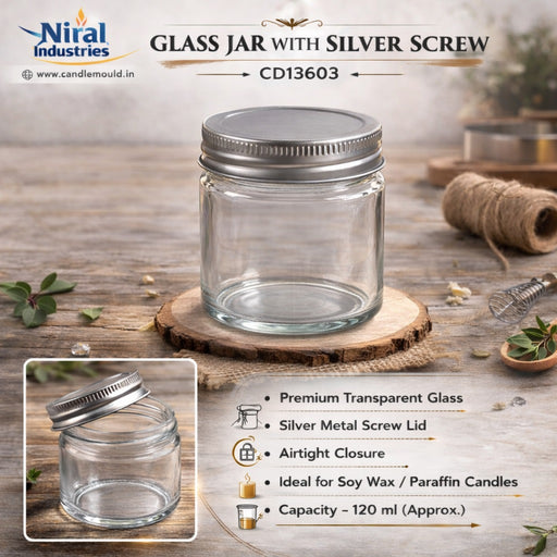 Niral IndustriesGlass Jar with Silver Screw - CD13603 Perfect for candle makers and craft enthusiasts, this durable glass jar combines functionality with elegant d...