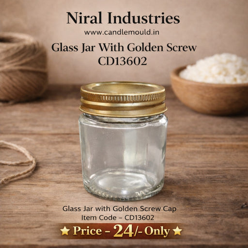 Niral IndustriesGlass Jar With Golden Screw Cap CD13602 Perfect for candle makers and craft enthusiasts, this elegant glass jar features a secure golden screw cap ...