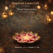 Imperial Lotus Urli (4.5Inch) CD13802 Bring timeless elegance to your home with this exquisite Imperial Lotus Urli. Measuring 4.5 inches, this decorative vessel features intricate lotus detailing that adds a touch of sophistication to any space. Perfect for floating flowers, holding water for rituals, or displaying as a standalone décor piece, this urli combines traditional craftsmanship with versatile functionality. Whether you're enhancing your living room, creating a serene garden corner, or gifting to someone special, this beautifully designed urli serves as a meaningful accent that celebrates cultural artistry and natural beauty.