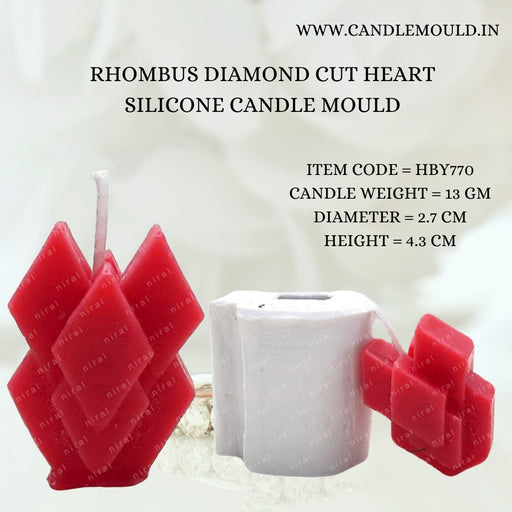 Niral IndustriesItem Code = HBY770 Candle Weight = 13 gm Diameter = 2.7 cm Height = 4.3 cm This Rhombus Diamond Cut Heart Silicone Candle Mould from Niral Indust...