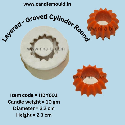 Niral IndustriesItem Code - HBY801 Candle weight = 10 gm Diameter = 3.2 cm Height = 2.3 cm The Layered Grooved Cylinder Round Mould is a versatile kitchen tool des...