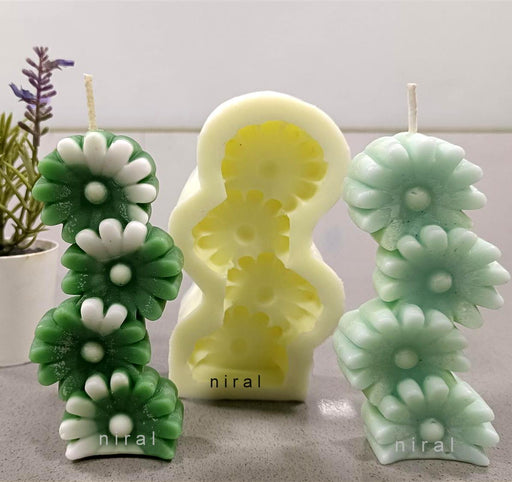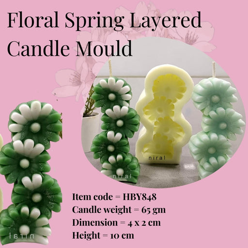 Niral IndustriesItem Code - HBY848 Candle weight - 65 gm Dimension - 4 x 2 cm Height - 10 cm This Floral Spring Layered Silicone Candle Mould will have you feeli...