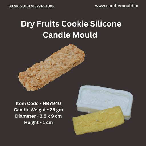 Niral IndustriesItem Code = HBY940 Candle Weight = 25 gm Diameter = 3.5 x 9 cm Height = 1 cm Craft delectable candle creations with the Dry Fruits Cookie Silicon...