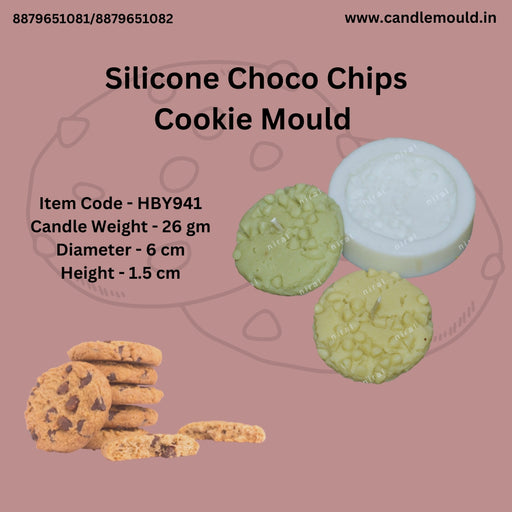 Niral IndustriesItem Code = HBY941 Candle Weight = 26 gm Diameter = 6 cm Height = 1.5 cm Craft delectable delights with the Silicone Choco Chips Cookie Mould. Th...