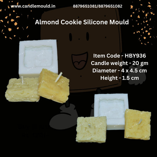 Niral IndustriesItem Code = HBY936 Candle weight = 20 gm Diameter = 4 x 4.5 cm Height = 1.5 cm The Almond Cookie Silicone Mould is a versatile baking tool design...
