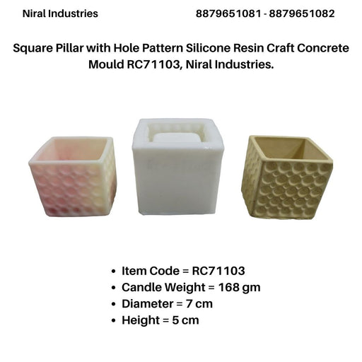 Niral IndustriesItem Code = RC71103 Candle Weight = 134 gm Diameter = 6 cm Height = 5.5 cm The "Square Pillar with Hole Pattern Silicone Resin Craft Concrete Mou...