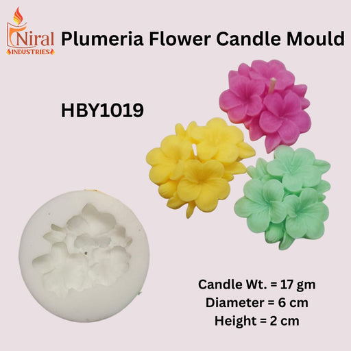 Niral IndustriesItem Code = HBY1019 Candle Weight = 17 gm Diameter = 6 cm Height = 2 cm Craft exquisite candles with the Plumeria Flower Candle Mould, HBY1019. D...