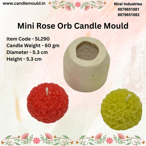 Niral IndustriesItem Code = SL290 Candle Weight - 60 gm Diameter = 5.3 cm Height = 5.3 cm Experience the beauty of the rose with Niral Industries' Mini Rose Orb...