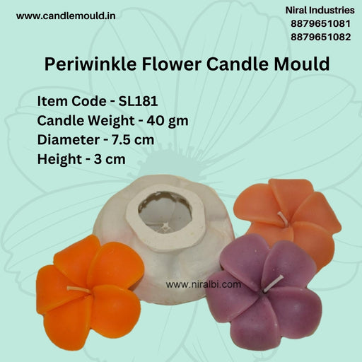 Niral IndustriesItem Code = SL181 Candle Weight = 40 gm Diameter = 7.5 cm Height = 3 cm This Periwinkle Flower Silicone Candle Mould SL181 by Niral Industries i...