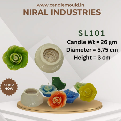 Niral IndustriesItem Code = SL153 Candle Weight = 15 gm. Diameter = 4.5 cm Height = 2.5 cm. Create elegant, timeless candles with the Graceful Rosebud Silicone ...