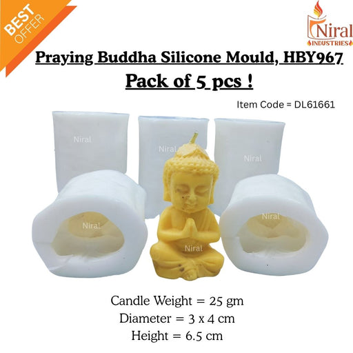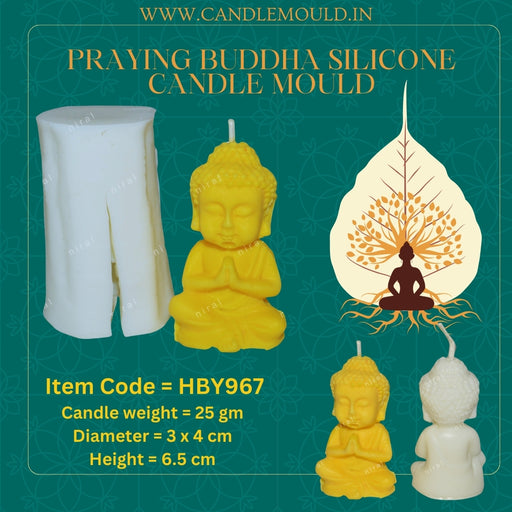 Niral IndustriesItem Code = HBY967 Candle Weight = 25 gm Diameter = 3 x 4 cm Height = 6.5 cm The "Praying Buddha Candle Mould" is a silicone mold designed to cr...