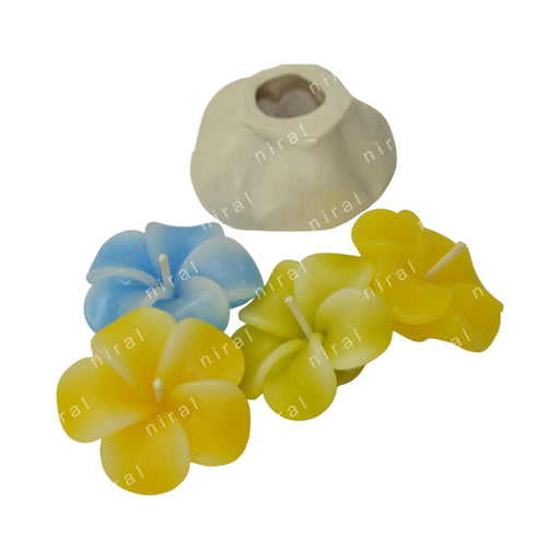 Niral IndustriesItem Code = SL255 Candle Weight - 6 gm Diameter = 3.5 cm Height = 1.5 cm This exquisitely crafted Champa Blossom on Base Silicone Mould from the...