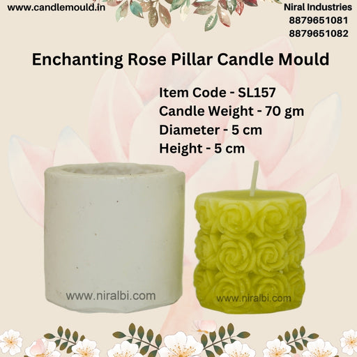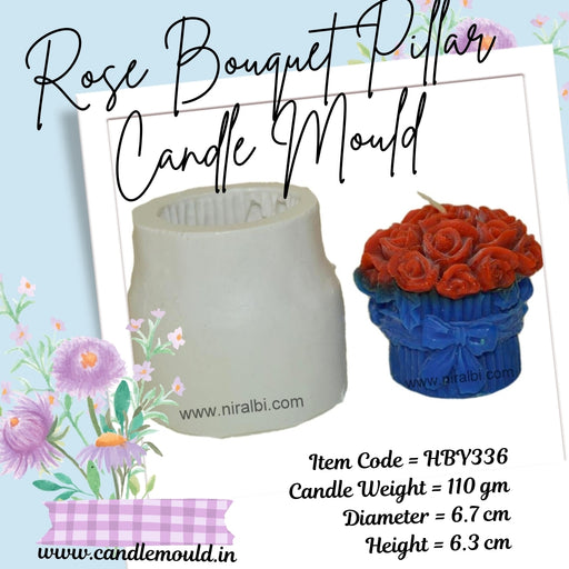 Niral IndustriesItem Code = HBY336 Candle Weight = 110 gm Diameter = 6.7 cm Height = 6.3 cm The "Rose Bouquet Pillar Silicone Candle Mould" is a high-quality, f...