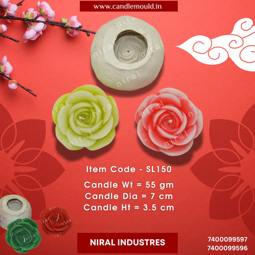 Niral IndustriesItem Code = SL150 Candle Weight = 55 gm. Diameter = 7 cm Height = 3.5 cm. The Serene Rose Floating Silicone Rubber Molds from HBH150 by Niral In...