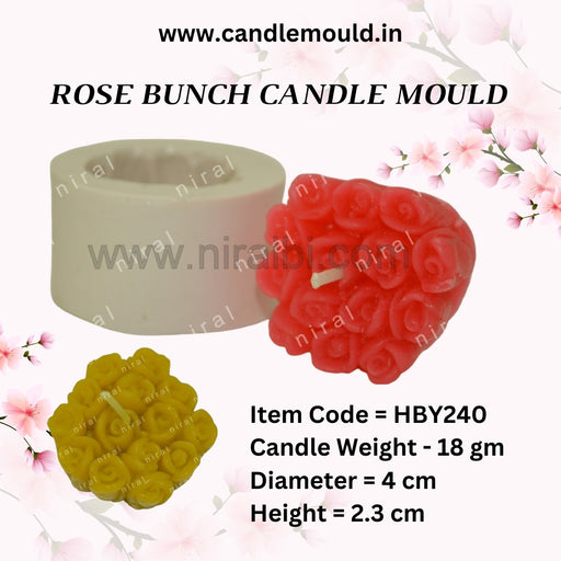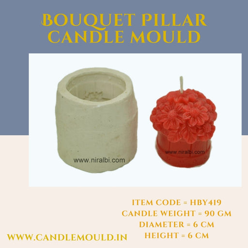 Niral IndustriesItem Code = HBY419 Candle Weight = 90 gm Diameter = 6 cm Height = 6 cm The "Bouquet Pillar Candle Mould" is a high-quality, reusable silicone mo...