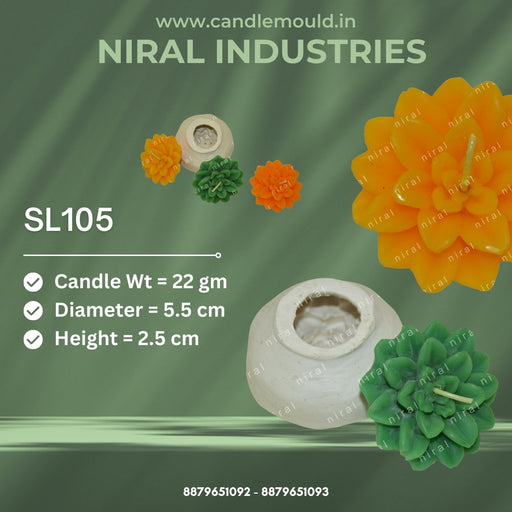 Niral IndustriesItem Code = SL368 Candle Weight = 15 gm Diameter = 5.7 cm Height = 2.3 cm The "Succulent Flower Candle Mould" is a versatile silicone mold desig...