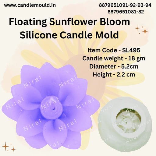 Niral IndustriesItem Code - SL495 Candle weight - 18 gm Diameter - 5.2cm Height - 2.2 cm Embark on a candle-making journey with the Floating Sunflower Bloom Sili...