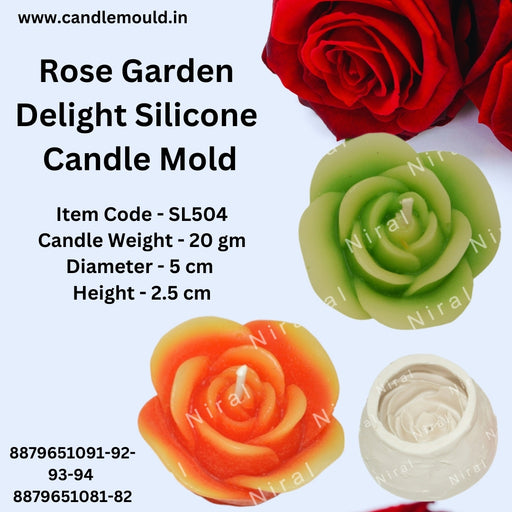 Niral IndustriesItem Code - SL504 Candle Weight - 20 gm Diameter - 5 cm Height - 2.5 cm Make candle-making easy with the Rose Garden Delight Silicone Candle Mo...