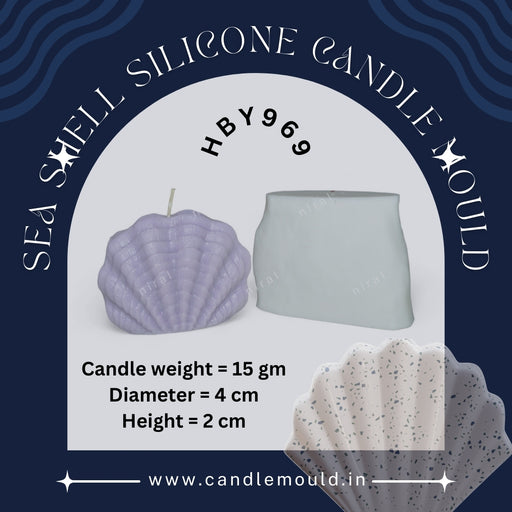 Niral IndustriesItem Code = HBY969 Candle Weight = 150 gm Diameter = 4 cm Height = 2 cm The "Sea Shell with Texture Candle Mould" is a detailed silicone mold de...