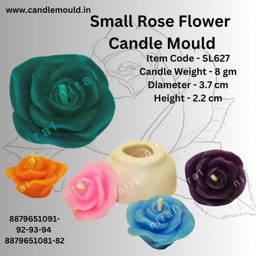 Niral IndustriesItem Code = SL627 Candle Weight = 8 gm Diameter = 3.7 cm Height = 2.2 cm The "Small Rose Flower Candle Mould" is a versatile silicone mold design...