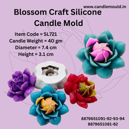 Niral IndustriesItem Code = SL721 Diameter = 7.4 cm Height = 3.1 cm Candle Weight = 40 gm Create beautiful candles with ease with the BlossomCraft Candle Mold! T...