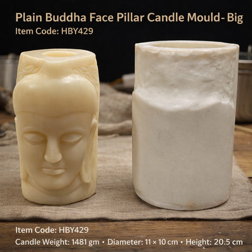 Niral IndustriesItem Code = HBY429 Candle Weight = 1481 gm Diameter = 11 x 10 cm Height = 20.5 cm The Plain Buddha Face Pillar Candle Mould (Big) features an...