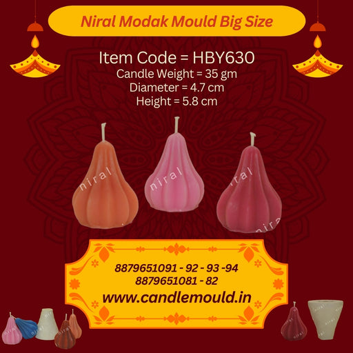 Niral IndustriesItem Code = HBY289 Candle Weight - 25 gm Diameter = 4.5 cm Height = 4 cm Create unique candles with this Grand Modak Delight silicone Candle Mol...