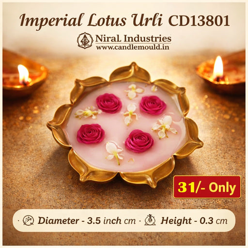 Niral IndustriesImperial Lotus Urli - 3.5 Inch Elevate your candle-making projects with this elegant Imperial Lotus Urli, a traditional vessel designed to enhance ...