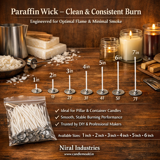 Niral IndustriesPremium paraffin wicks designed for candle makers who demand consistent, clean burns. Each wick is engineered to provide optimal flame height and m...